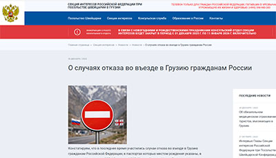 შვეიცარიის საელჩოსთან არსებული რუსეთის ინტერესების სექცია მოუწოდებს რუსეთის მოქალაქეებს, საქართველოში ვიზიტამდე რისკები შეაფასონ
