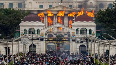 ნეპალის დედაქალაქში, მას შემდეგ, რაც პროტესტის მონაწილეები პარლამენტში შეიჭრნენ, შენობას ცეცხლი გაუჩნდა