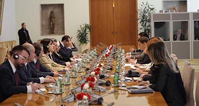 საქართველო, 19 დეკემბერი, საქინფორმი. საქართველოს პრეზიდენტმა, მიხეილ ყაველაშვილმა სერბეთის პრეზიდენტთან, ალექსანდარ ვუჩიჩთან დელეგაციების მონაწილეობით გაფართოებული ფორმატის შეხვედრა გამართა.