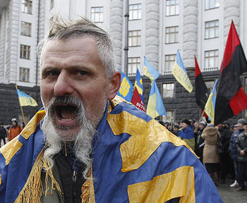 საქართველო, 9 დეკემბერი, საქინფორმი. უკრაინაში ვითარება სულ უფრო მწვავდება: ოთხშაბათს ქვეყნის ხანგრძლივვადიანი ევროობლიგაციები დაეცა, რეზერვების მოცულობამ კრიტიკულ მინიმუმს მიაღწია. პანიკაში მყოფი მოსახლეობა ვალუტას იძენს და ბანკებიდან ფული გააქვს. საერთაშორისო სავალუტო ფონდი და ევროკავშირი უკრაინას არ დაეხმარებიან, აი რუსეთს კი მოუწევს, რადგან რუსები, როგორც კვიპროსის შემთხვევაში, ფულის დაკარგვას რისკავენ. ევროინტეგრაციის ათასობით მომხრე კიევის მაიდანზე რჩება და ევროკავშირთან მოლაპარაკების განახლებასა და მთავრობის გადადგომას ითხოვს.